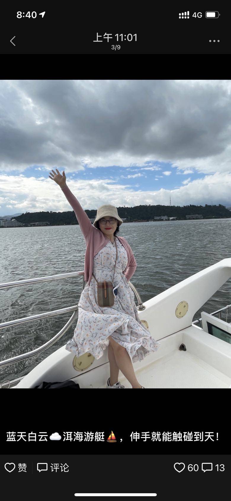 在游艇上美美的拍照,感觉伸手就能触碰到天,忍不住在朋友圈里发了个九宫格,收到了60个赞。现在和朋友之间点赞都疲了,没有点真材实料都不轻易动手,哈哈😄。