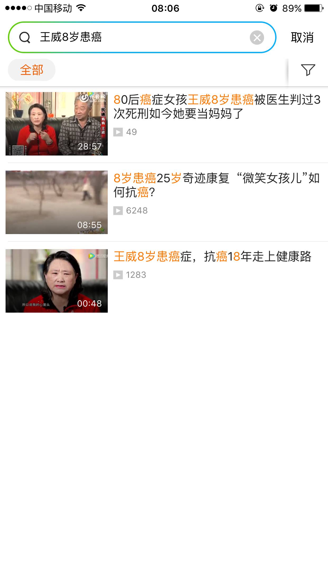 王威8岁患癌