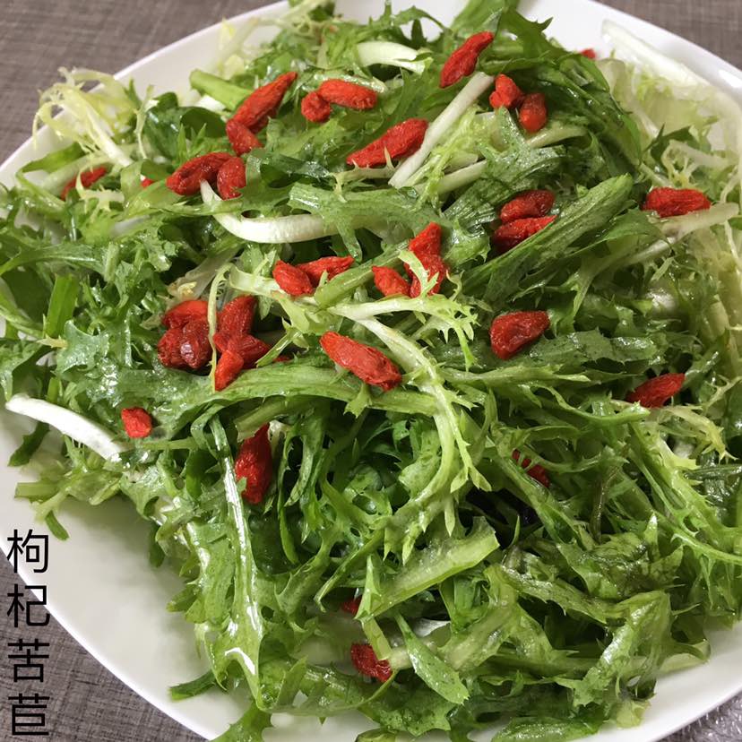 今日午餐:枸杞橄榄油拌苦苣