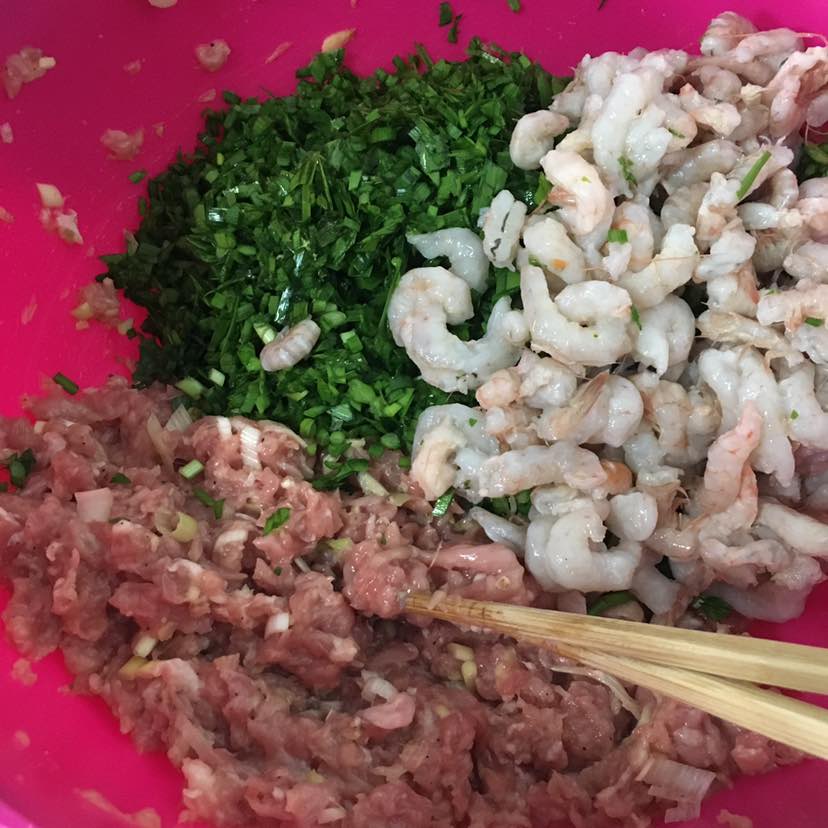 老王昨天说想吃饺子,三鲜馅的。昨天就把所有食材备好,虾仁是海虾扒的,绝对靠谱😄放点猪肉和韭菜味道杠杠滴👍