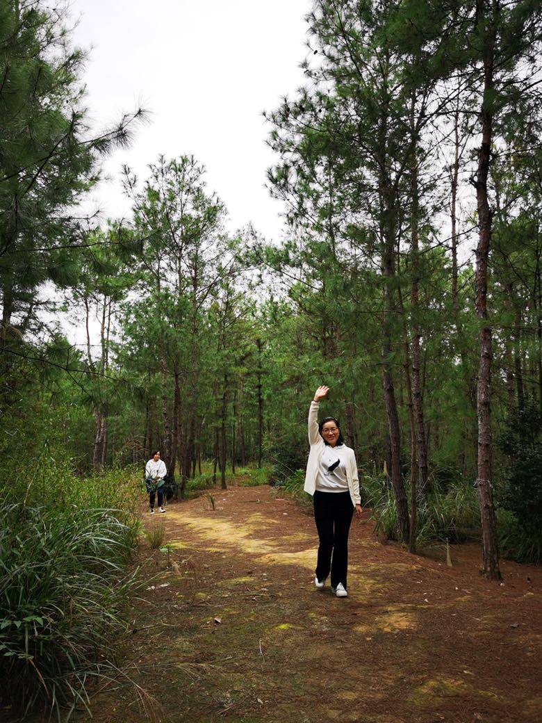 下午带着朋友去山区爬山,山高路远,有一点点小累,朋友还爬不过我,我这体质杠杠滴。爬到山巅,极目远眺满眼绿色,植被非常好,果然青山绿水就是金山银山呢。