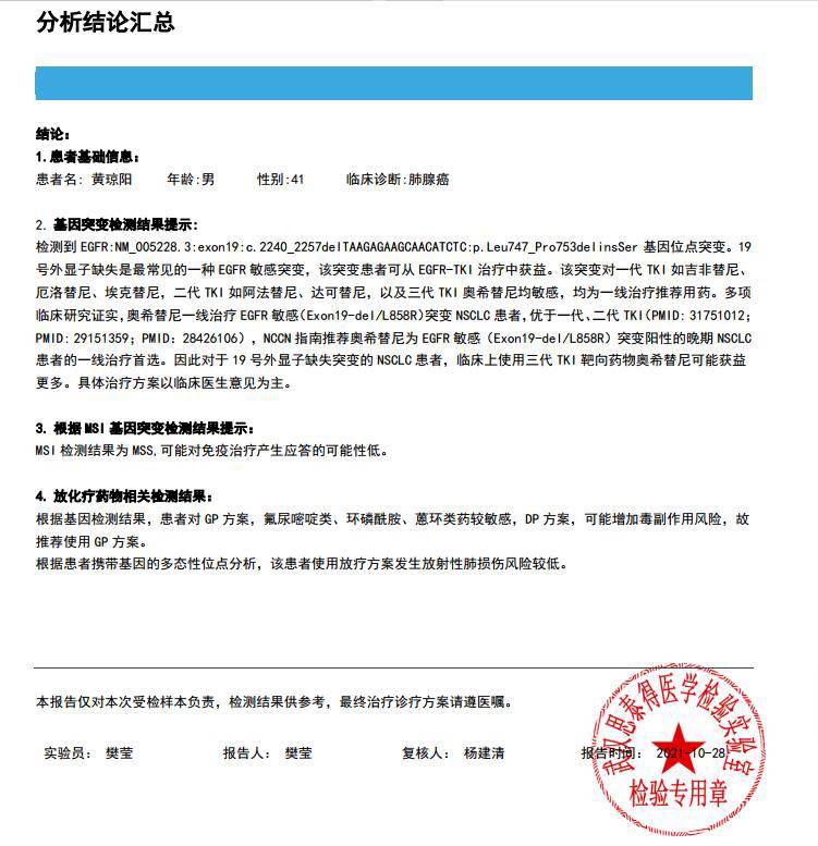EGFR又回到19突变,同时还有TP53突变,没有靶向可换了。