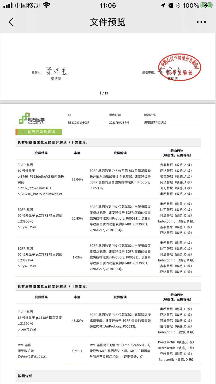 这其中有一个靶向药起效了,就很不错了