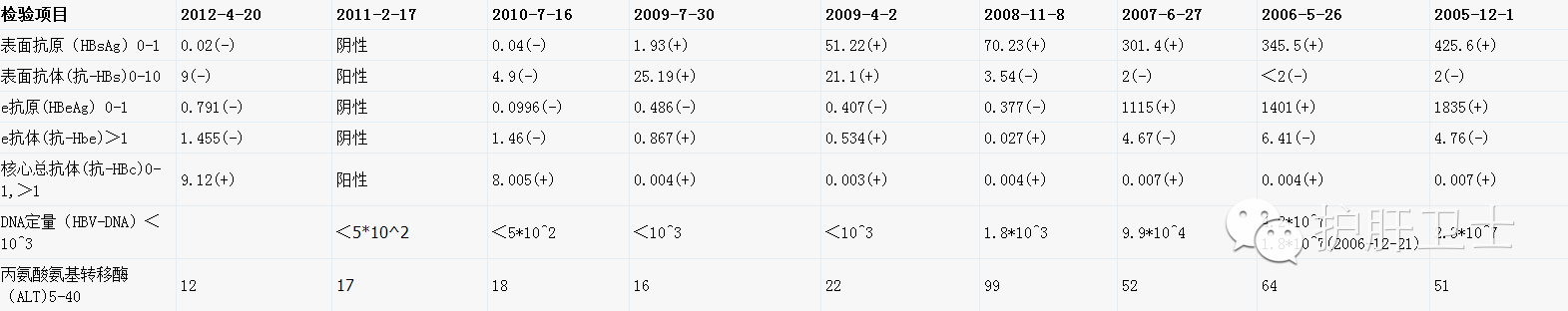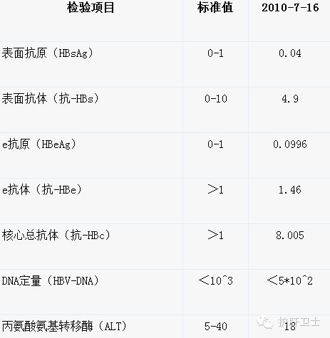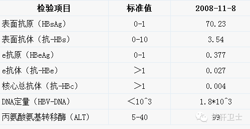 2005年11月,单位体检,查处1、3、5阳性,所谓的大三阳。单位让到一家三甲医院复查,复查结果如下: