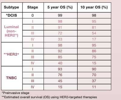 her型晚期五年生存率也有四成。