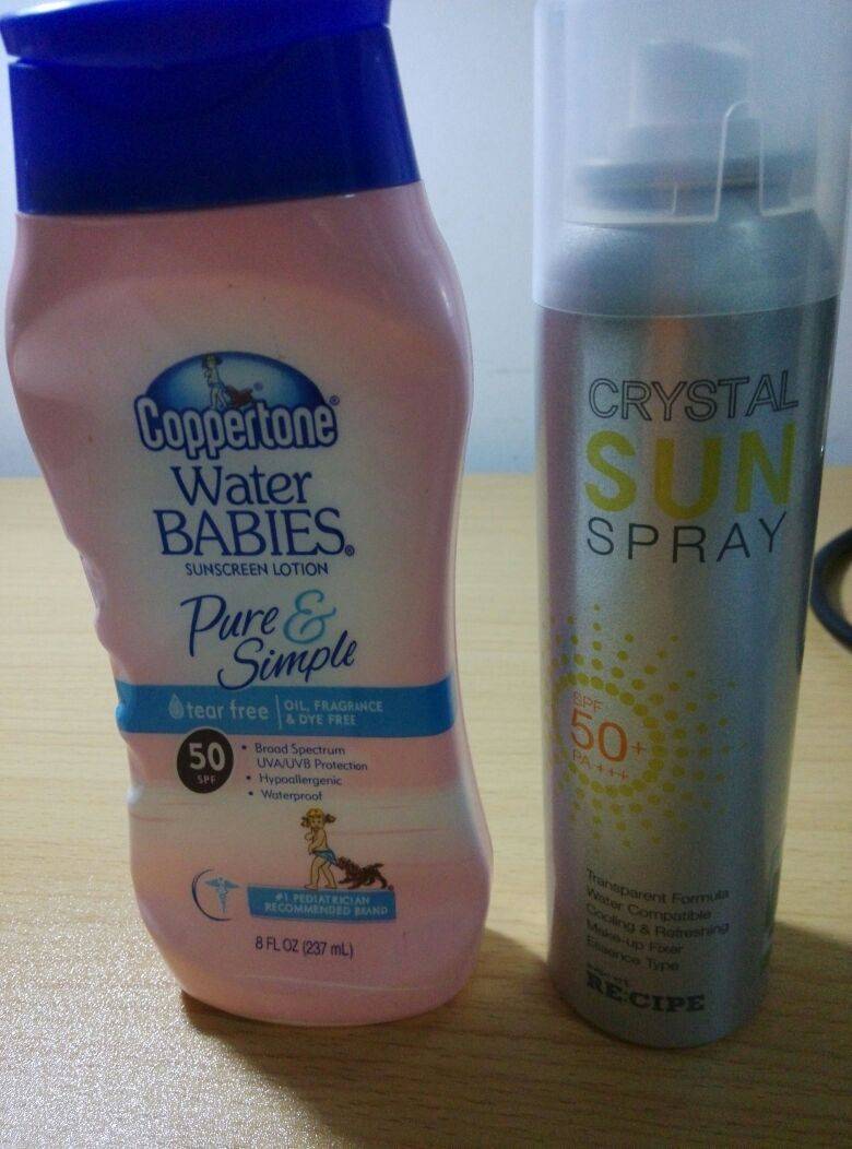瓶装的干爽不腻,水宝宝就有点油腻感。防晒指数都在50