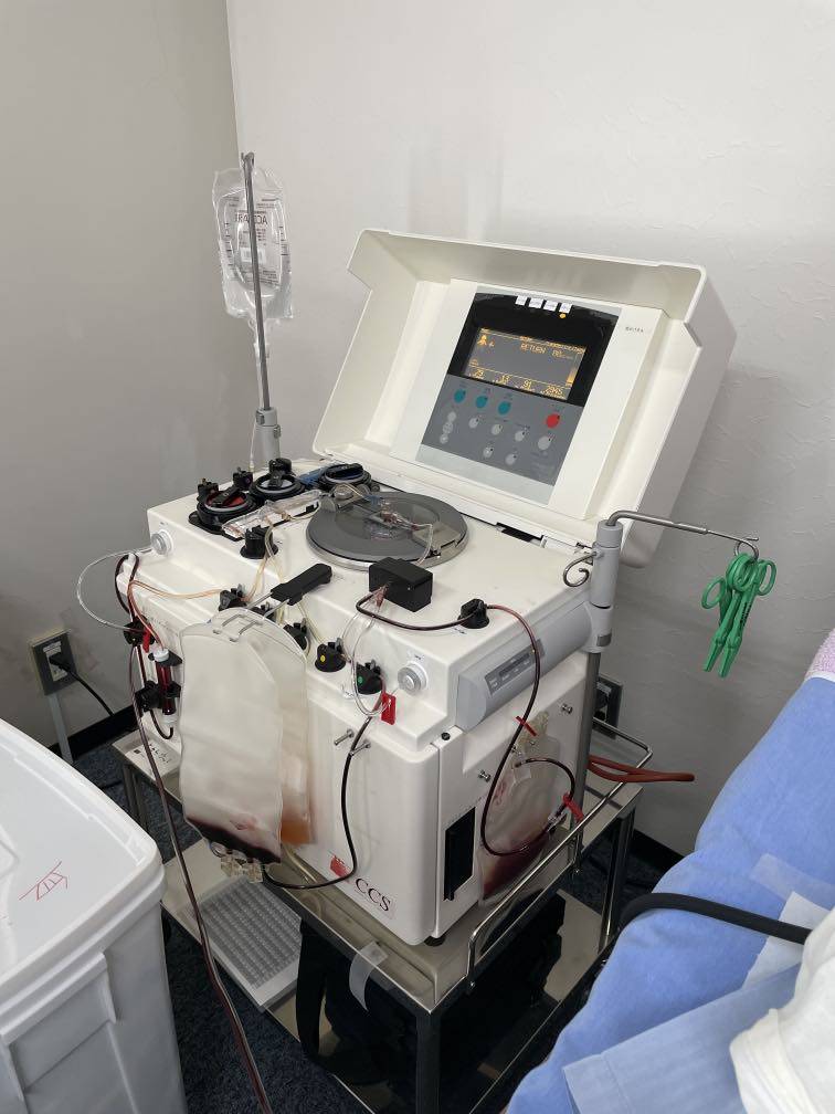 首先,我们到现在为止还没有正式治疗,日本的医生都需要预约和医生写推荐信的方式,检查也是需要预约的,所以这些天也是每隔一天都在往医院跑,来日本三天三次核酸检测后就可以去医院了,很幸运遇到一位很好的医生👨🏻‍⚕️森崎院长,30多年知名癌症专家,第一次问诊就一个半小时,对我们带过去的几次CT光盘反复对比研究,包括过往治疗方案及副作用的表现都问的非常详细,惊讶的是彩超都是院长亲自动手操作!需要外科配合的,院长也亲自写了推荐信。接下来安排三天后采血,做细胞免疫回输做准备。采血是从大腿根部采,用离心机采血,说是为了细胞更好的活性!