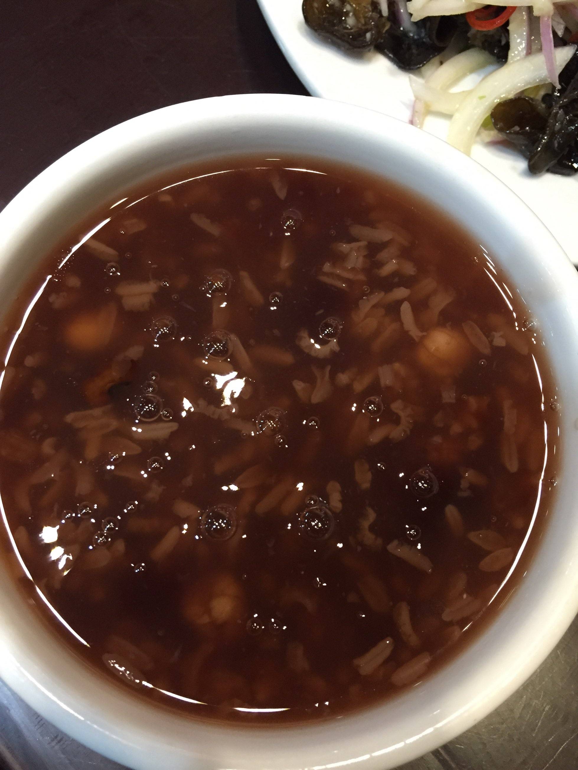今天太懒,在外面吃饭,红豆糯米稀饭,洋葱木耳,锅盔