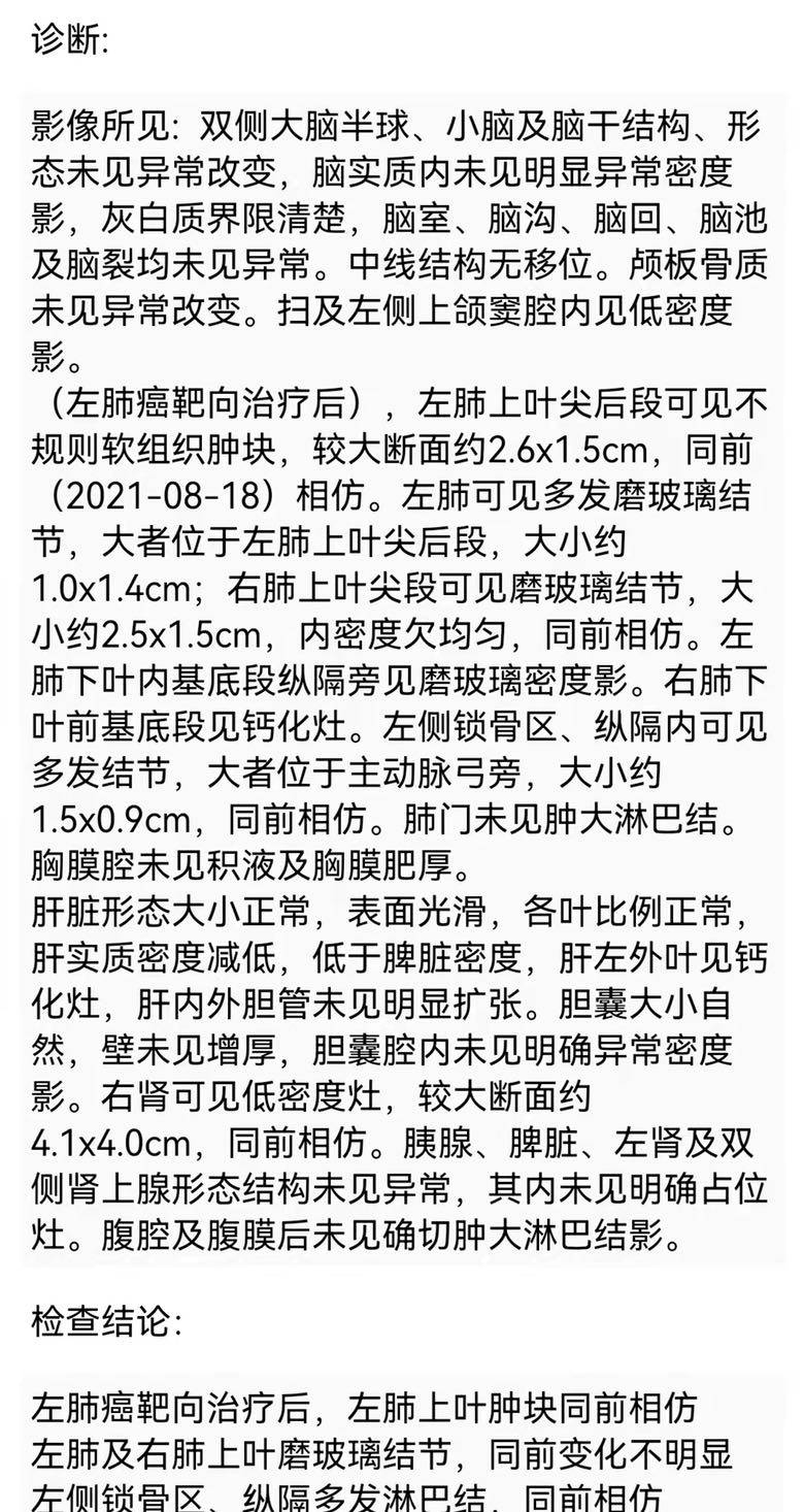 妈妈患肺癌已经有三年了,这三年来一直在接受治疗到现在,下面是妈妈检查以及治疗的过程。2010年10月,妈妈体检出肺癌IV期,纵隔淋巴转移,肝部转移,去省肿瘤医院复查,做了PET-CT,结果一样,省肿瘤