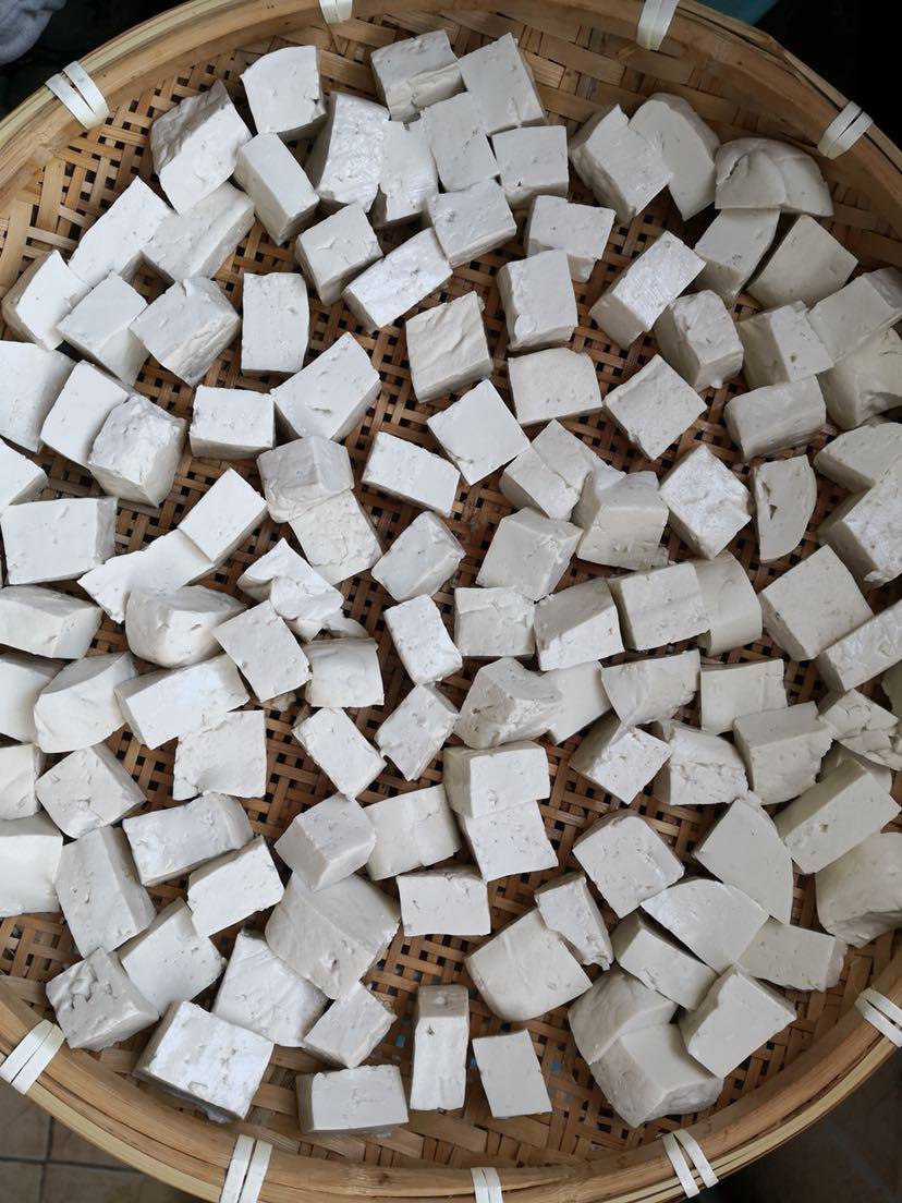 今天应个景我们这冬至吃豆腐, 姐姐给了一些农村买来的香豆腐,太多了怎么办?冻豆腐可以有,豆腐果可以有,说干就干,切小块泡水凉干,午饭后油炸豆腐果,放便存储,看看我炸的豆腐果