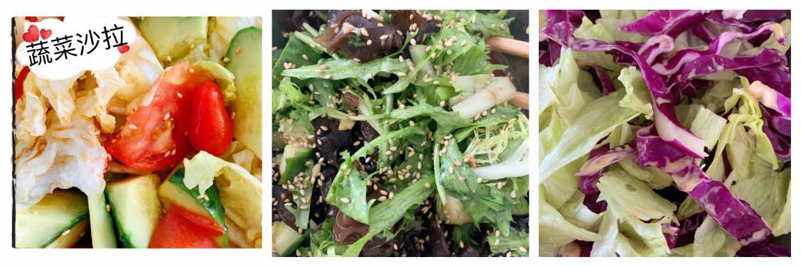 我经常做蔬菜沙拉。自制油醋汁:橄榄油、醋,蜂蜜、盐、少许水。然后把各种蔬菜放一起凉拌。