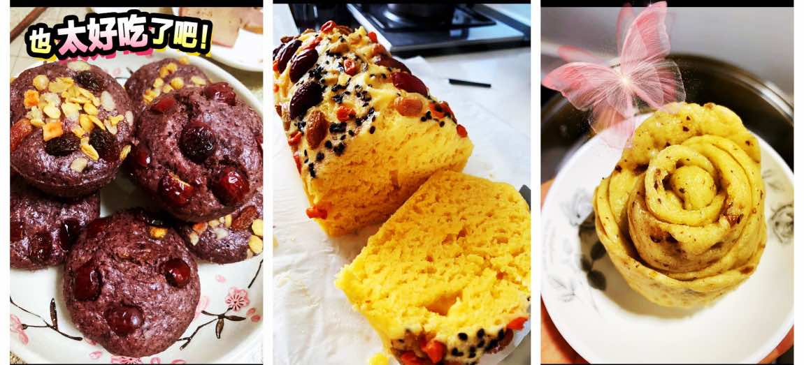 第一个,是用全麦面、荞麦面蒸出来的馒头;