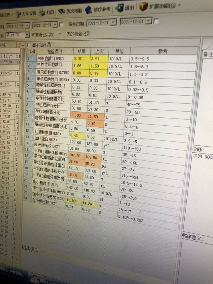 开始治疗后,白细胞一直很低,放化疗那段时间,就是升白针应对。之后靶向药和免疫治疗期间,每21天住院,白细胞总是2点多,医生后来也不给我打升白针了“打也没用,升上来还会掉下去,你适应了就行了”的确适应了,1.9的时候也没有什么感觉。感冒是经常性的,但也没有影响什么。我也就只三红汤(不喜欢红糖和花生)➕升白片地喝着。
