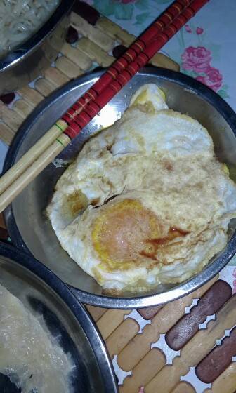 😄😄妈妈晚上不吃肉,多吃菜,我也不想吃饭,妹妹不会来,就决定吃面条吧,我加了个手抓饼,两个煎鸡蛋,本来炸的鸡翅,变成了焗,,味道还可以喔,妈妈不给我吃辣么多炸的,所以没办法啦。。