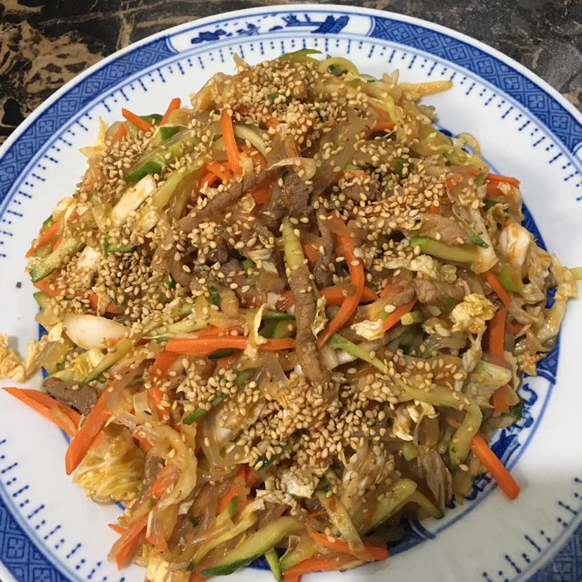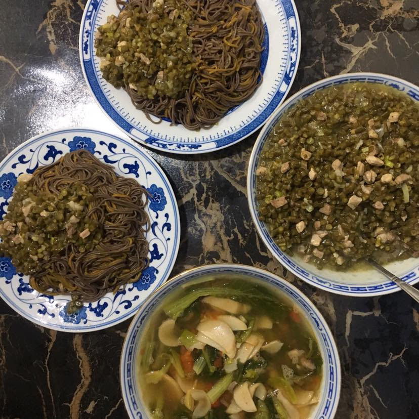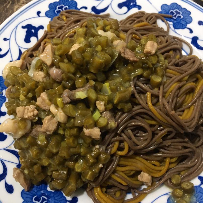 9号今天早餐:肉丁酸豆角拌苦荞麦面