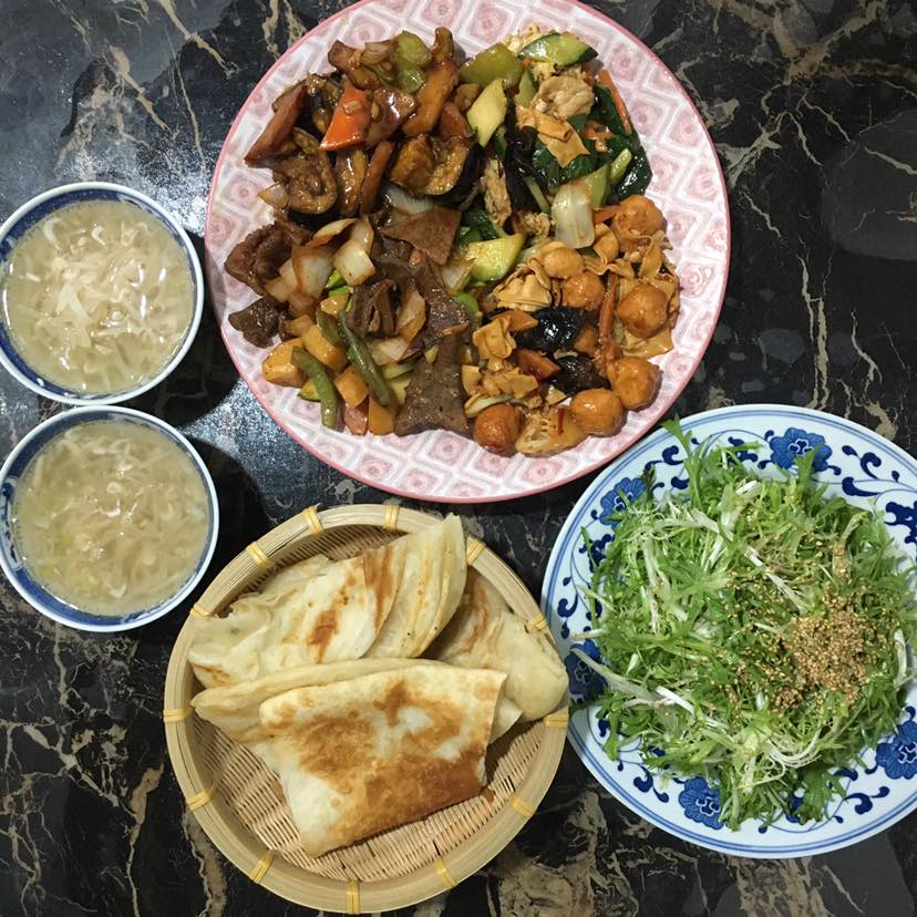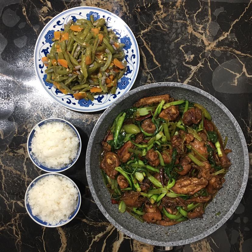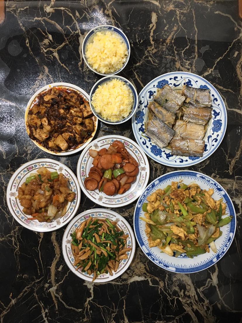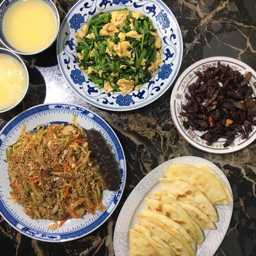 早餐我俩对付的,吃的粽子,所以午餐多做几样菜