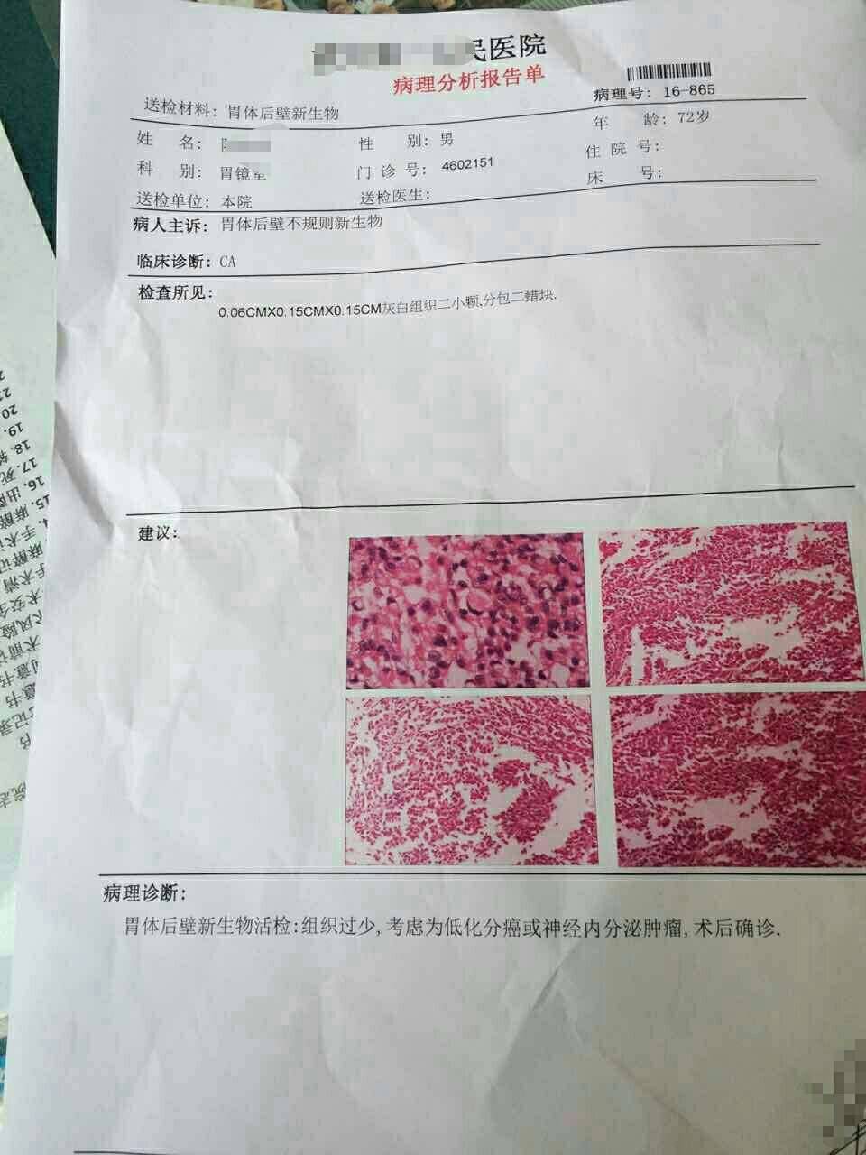 问:楼主,我爸爸前段时间也刚被确诊为胃癌,我把CT和胃镜结果拍了你看下。