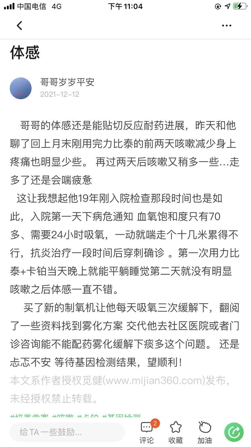 记录下,12月到这个月13号体感都是非常差的状态。有多差呢?除了白紫副作用躺在床上几天动弹不得之外走个20米都听到他在透大气,上2、30个阶梯都喘得想吐…心率最快达到145且长期在126左右!咳嗽非常多晚上没有办法睡觉有一段时间都没有办法吃米饭,全靠硬吞粥维持。