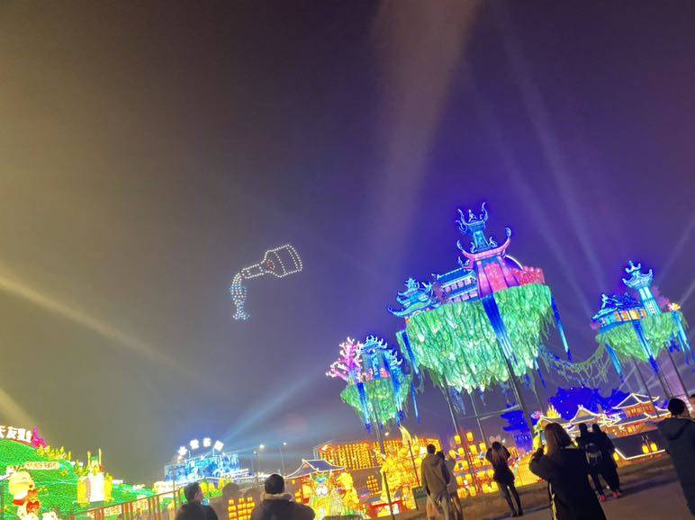 最‬受欢迎的灯‬要‬算‬抖音朋友圈里看得最多的《山海异志》单元的精卫女神,从面部妆容到层层缠绕的头发都制作得相当精细,睫毛根根分明。飘在空中的《上元幻境》组合,美‬成了人人‬向往去到的人间仙境。无人机‬控制‬的夜‬空‬中翱翔‬的凤凰‬。空中‬变化‬的各种‬图案‬,还有‬一瓶‬五粮液‬在‬空中‬打开‬倒‬入酒杯‬里。