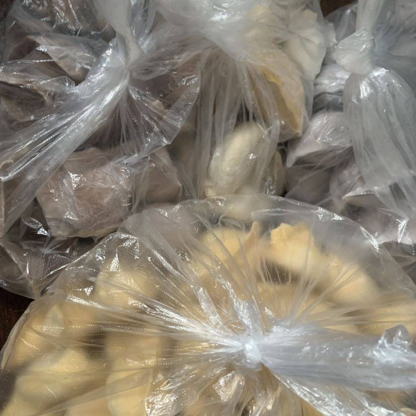 不同馅料的饺子。
