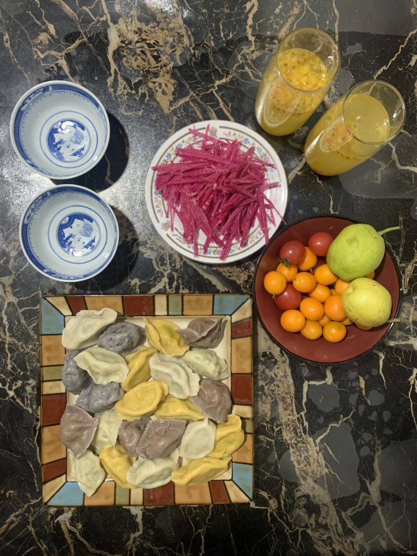 北方过小年有吃饺子的习俗。这几天把过年的冻饺子都已经包好,有芹菜猪肉,酸菜猪肉,虾仁🍤猪肉韭菜和胡萝卜🥕香菇猪肉和白菜猪肉。一共五种馅料。饺子皮有南瓜,蓝莓🫐火龙果还有黑米面的。