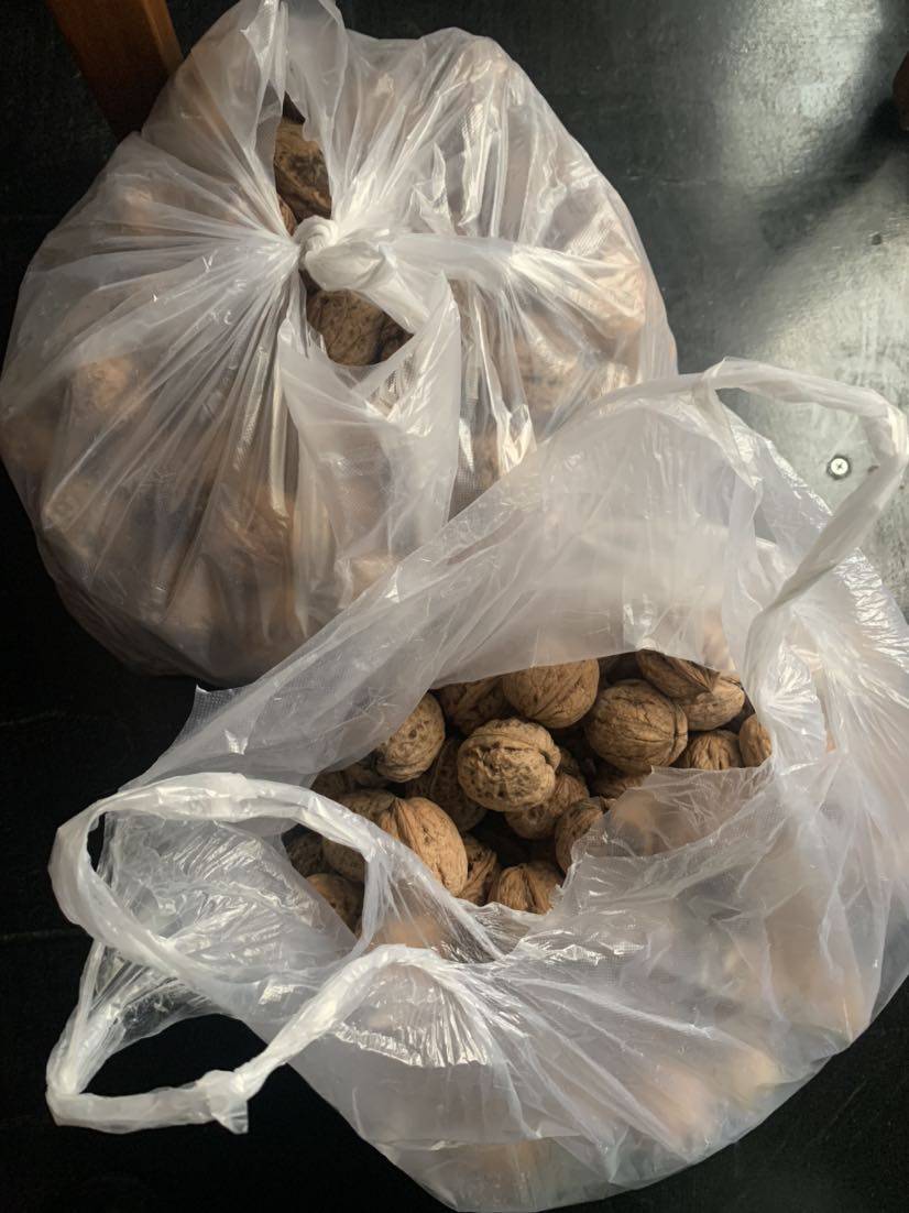 溜溜哒哒逛了一会,买点菜,又看到核桃,挑了两袋大一些的,然后回单位做午餐。