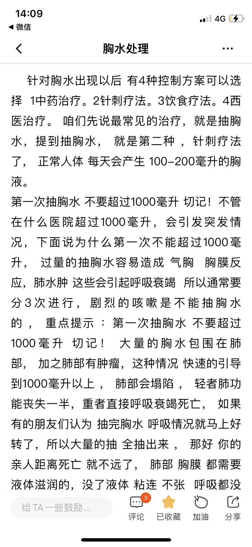 积液要及时排出,不排患者会很难受,我们当时就是大量积液,呼吸困难气喘,睡觉不敢平躺,压迫胃部导致没食欲,胸腔灌注化疗药看看能不能控制住