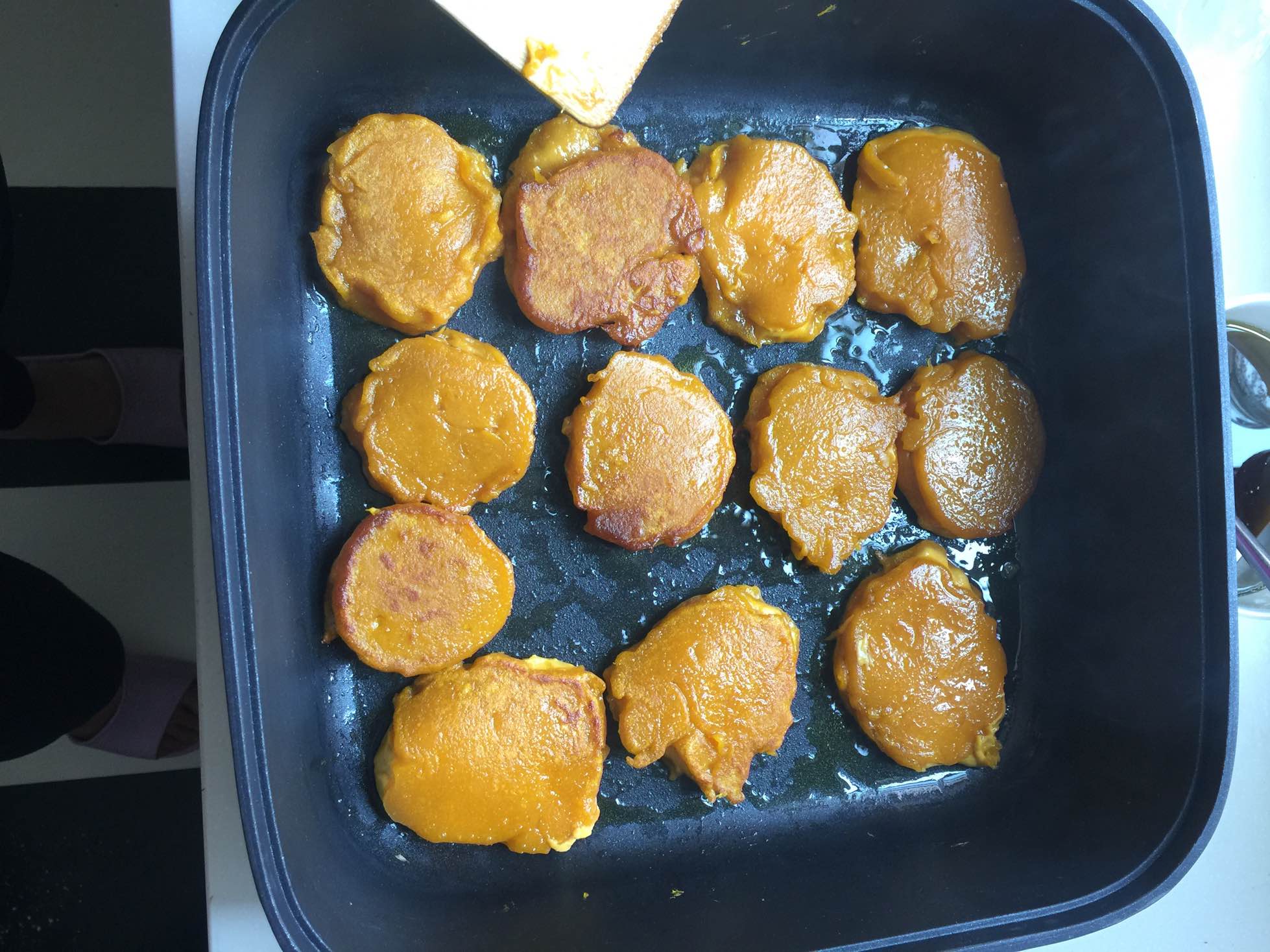 5、大火把形状固定住,小火把里面煎熟,如果不想吃油炸食品也可以上锅蒸