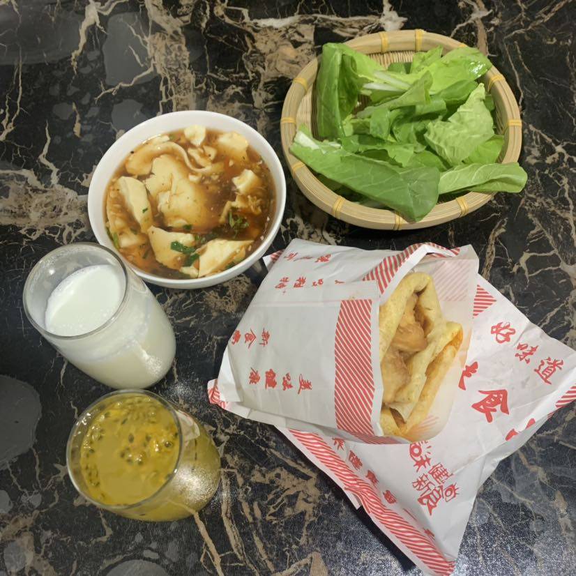 早餐🥞煎饼果子和豆腐脑,青菜🥬