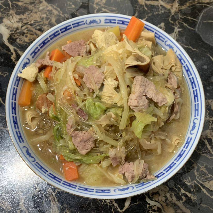 午餐🥣东北乱炖,白菜🥬干豆腐,肉片和胡萝卜🥕薯粉