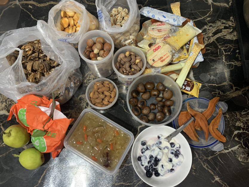 晚餐:水果🍊🍐银耳羹和蓝莓酸奶,坚果等标准茶话会模式😄