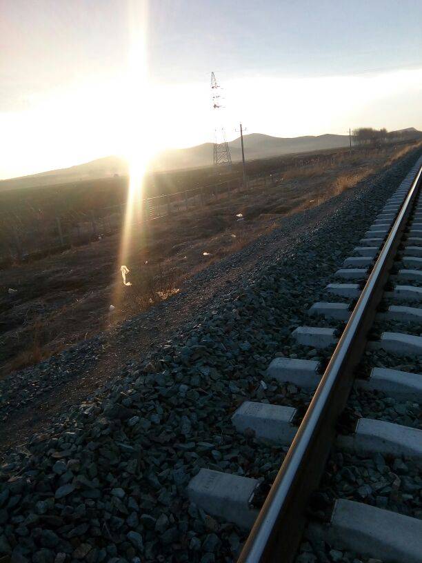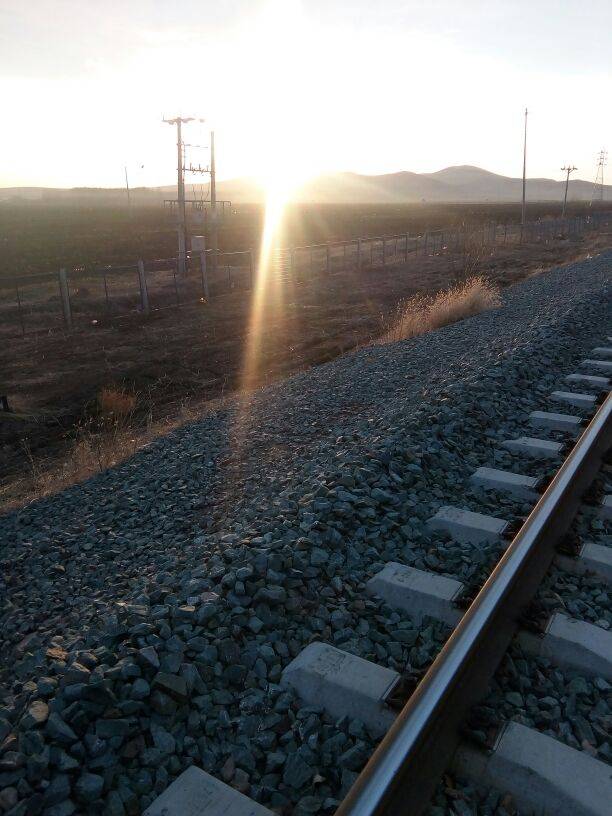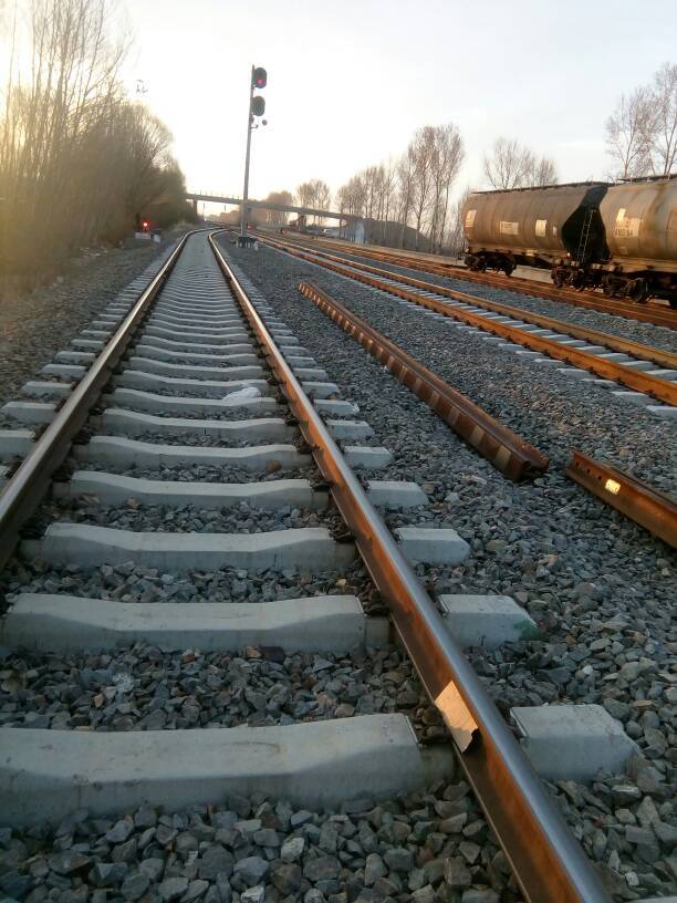 在铁轨边,注意安全