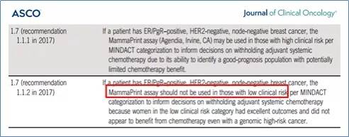 ASCO 2019 - 70基因:根据MINDACAT研究,70基因可用于临床高危的ER阳性、HER2阴性患者,临床低危患者不要进行该检测