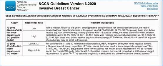 NCCN 2020 V6版对EndoPredict(12基因)和70基因的推荐