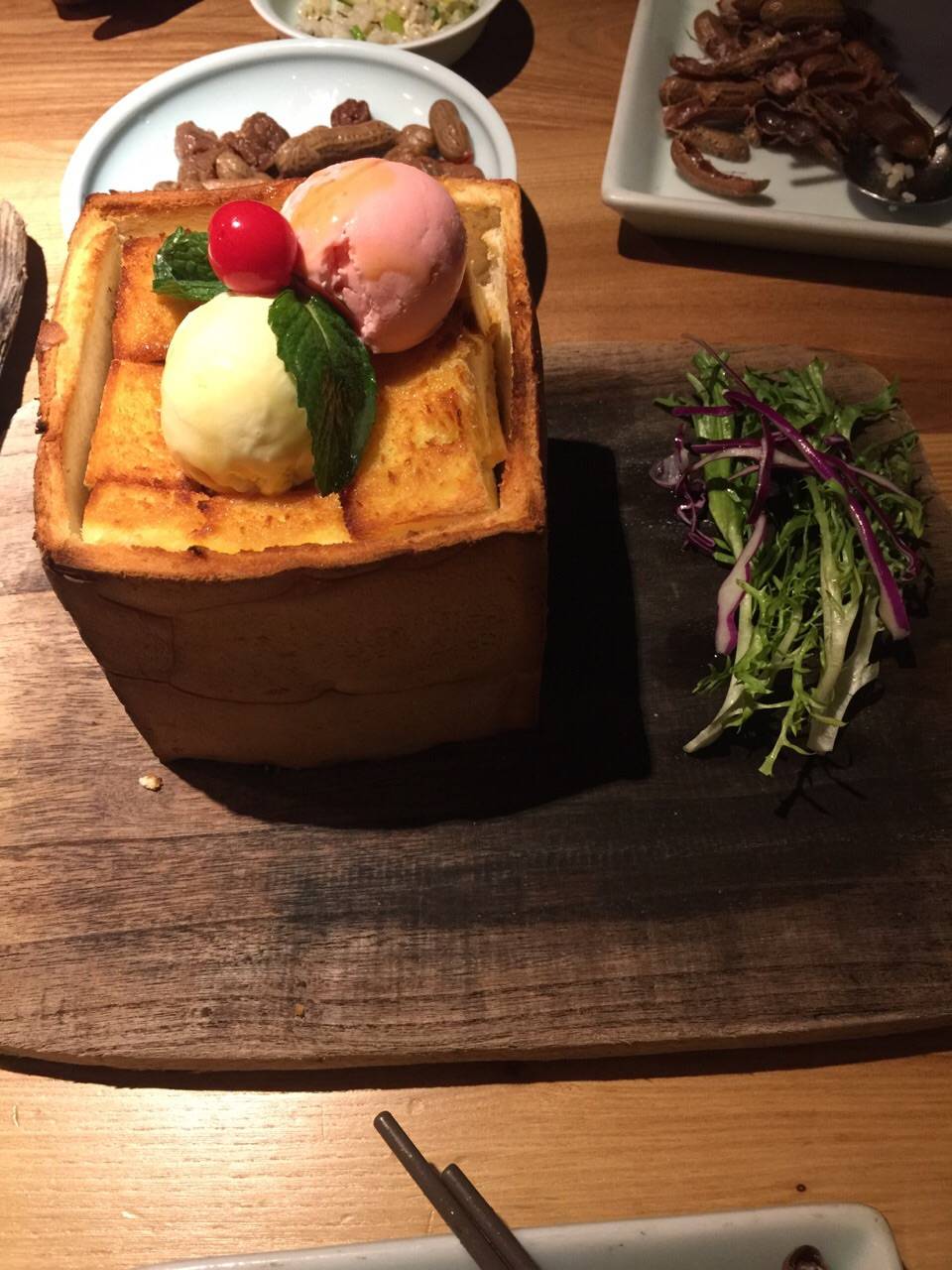 ,还表演了快速吃烤鸭,哈哈,面包诱惑就爱吃上边那俩球