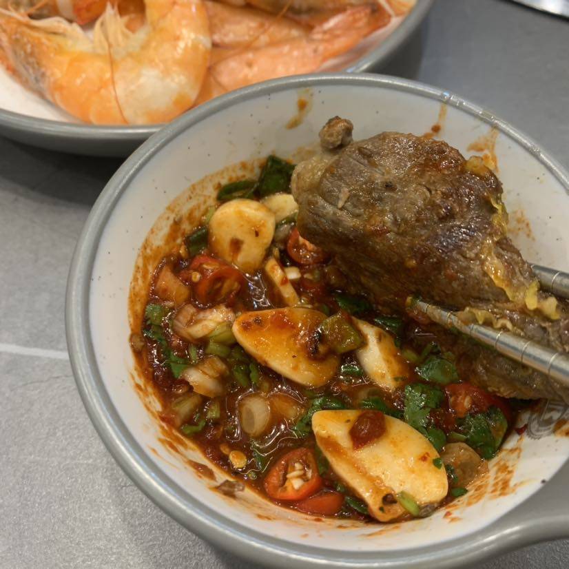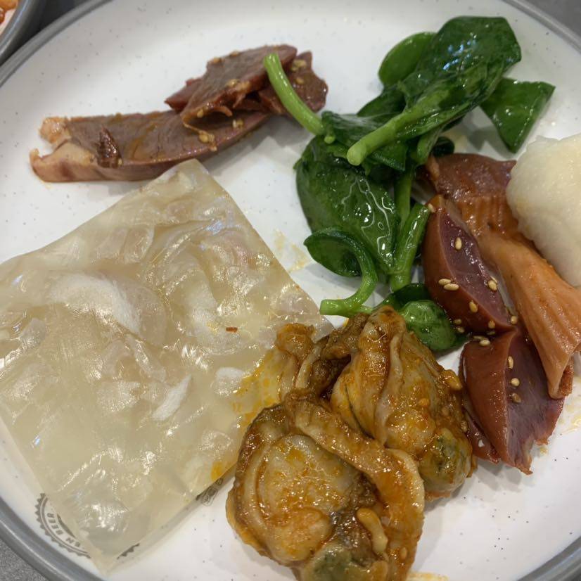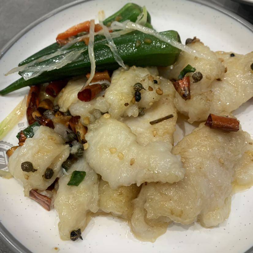 水煮鱼和秋葵,今天出来就是吃肉的,青菜今天就免喽😄吃几个秋裤意思意思。