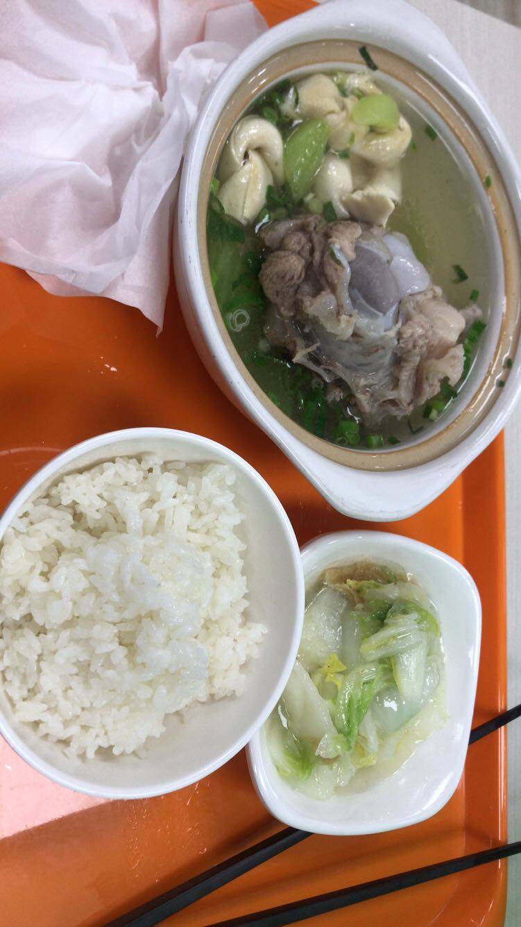今天是胃最舒服的日子,中午终于可以吃肉了,买了一份骨头煲,热腾腾的,吃下去全身舒畅!