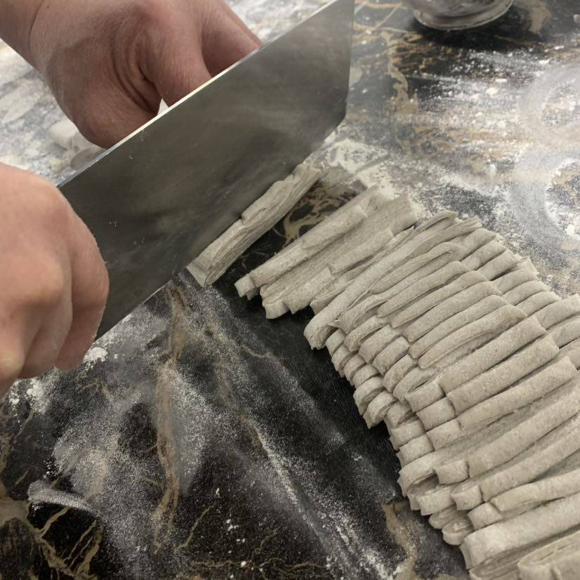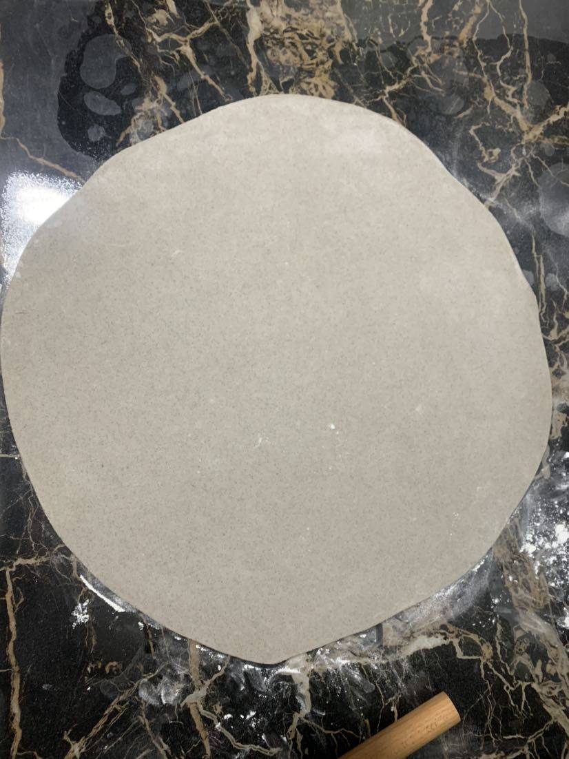 杂粮面能擀成这样,好手艺。杂粮筋性差,我往往还没擀薄,就破个洞,或者边上毛毛糙糙。