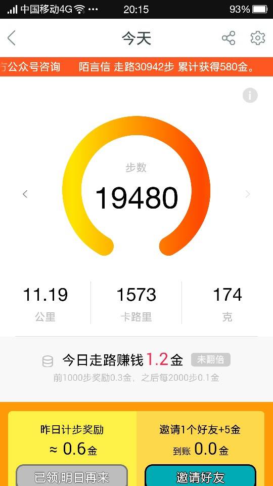 我今天走了19480步