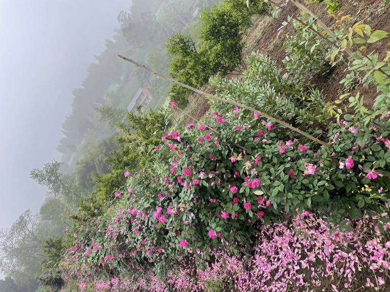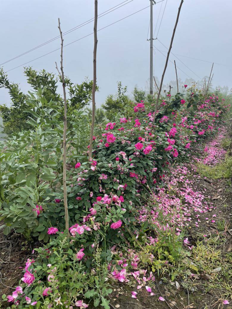 雨后的空气特别清新,这时间的巡山的任务就是春游啊。在一个检查卡点附近看到一遍桔子林,主人把月季做成篱笆,真是一个有心的农主。繁花时节刚刚过了,昨天的雨又打落许多月季花瓣,连残花败柳也是一组很美的风景。这美丽烂漫的春光。