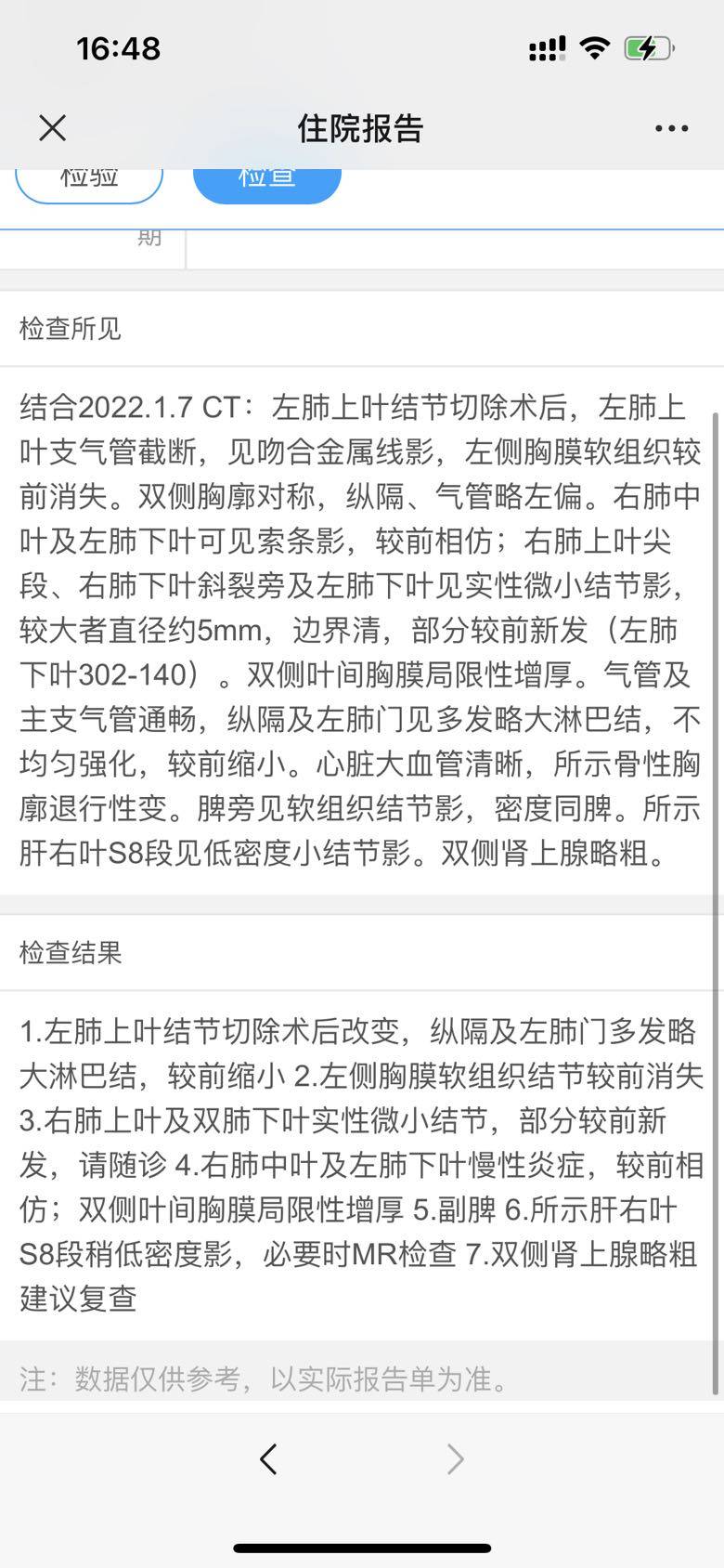 第四次化疗前拍的片子医生说可以继续用贝伐+培美+卡铂的方案