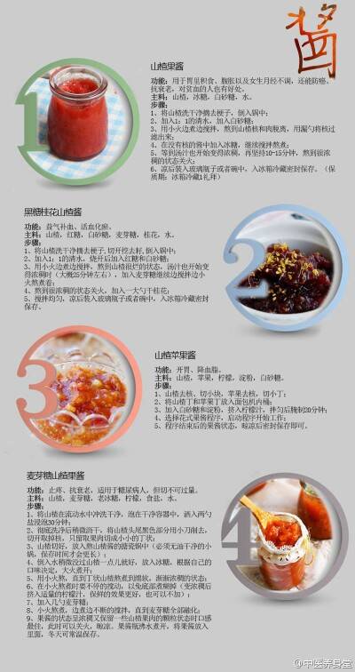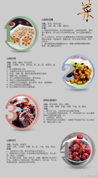 山楂具有降血脂、血压、强心、抗心律不齐等作用,同时也是健脾开胃、消食化滞、活血化痰的良药,对胸膈脾满、疝气、血淤、闭经等症有很好的疗效。最重要的是,山楂味酸爽口,十分好吃。整理了一些山楂的做法,山楂入菜、泡茶、果酱,均已加入套餐,糖葫芦以后也可以自己做!