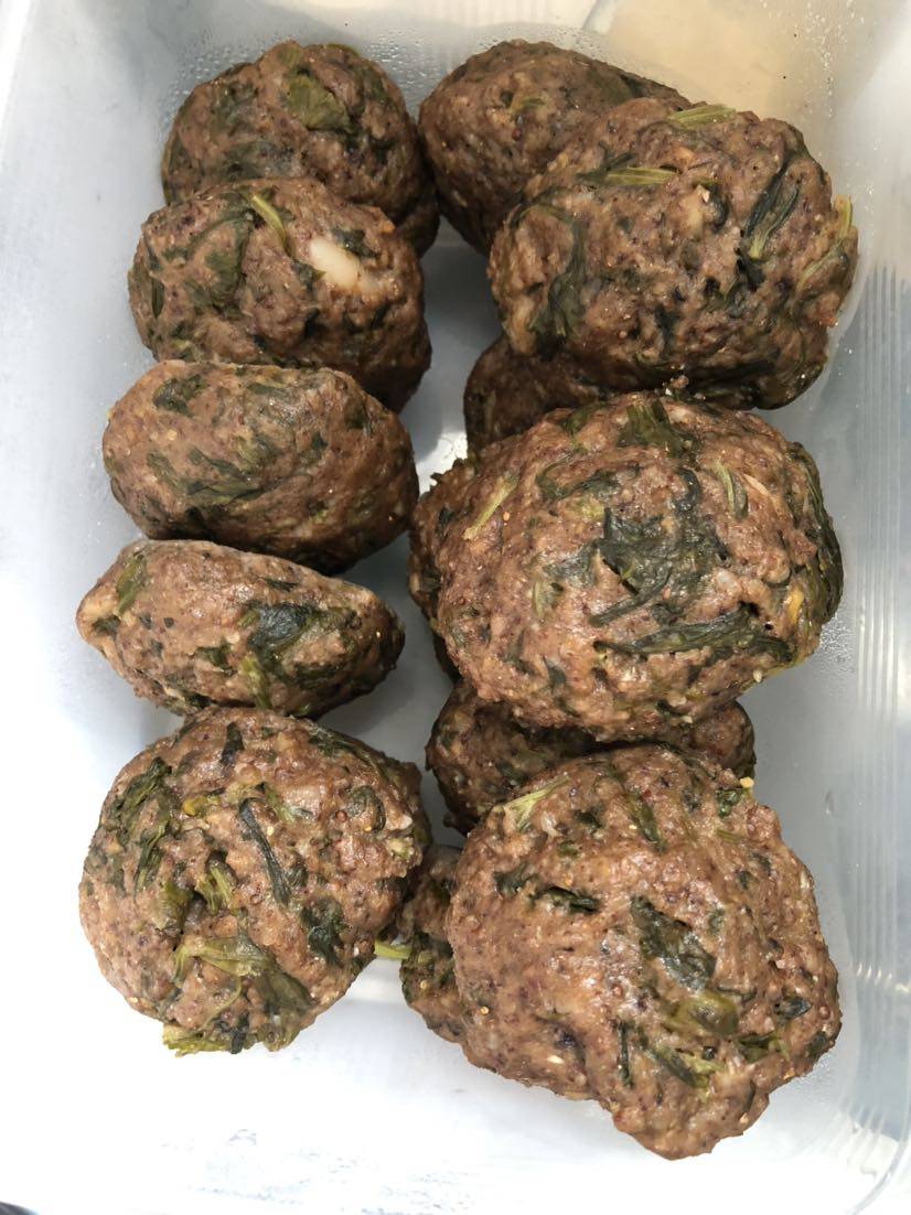 今天做了芹菜叶菜饼焯好芹菜叶切几刀,加入打好的各类米汁,玉米面,豆面,高粱面,小米面,麸子面,五香面,盐和油,我还加了泡好的紫苏种子。