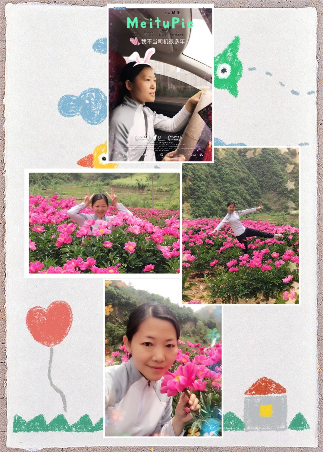 ,晚上赶到竹山县城,住在亲友家。虽然奔波有些劳累,可是心情却很放松。回来偶遇芍药花开,开心地跑到田里去臭美几张