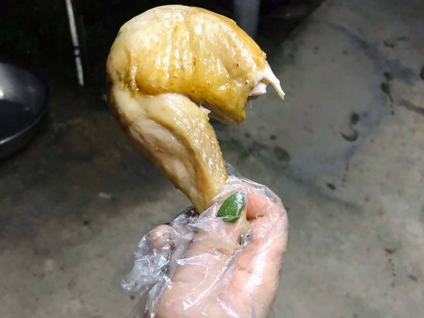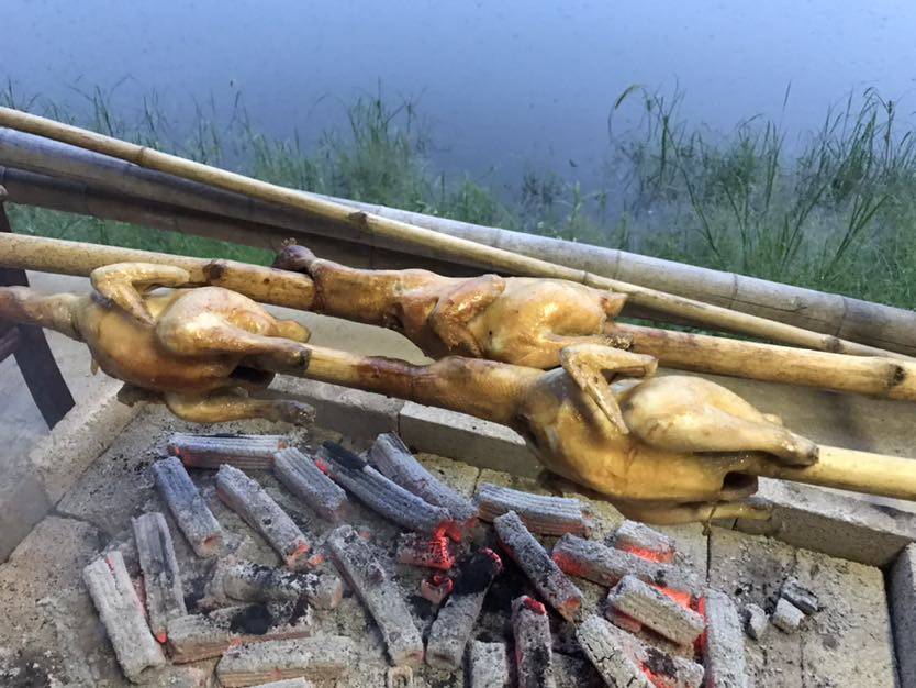 下午去朋友同事的鱼塘玩,烧鸡,好吃,我吃了两个鸡腿,一个鸡翅,哈哈。满足
