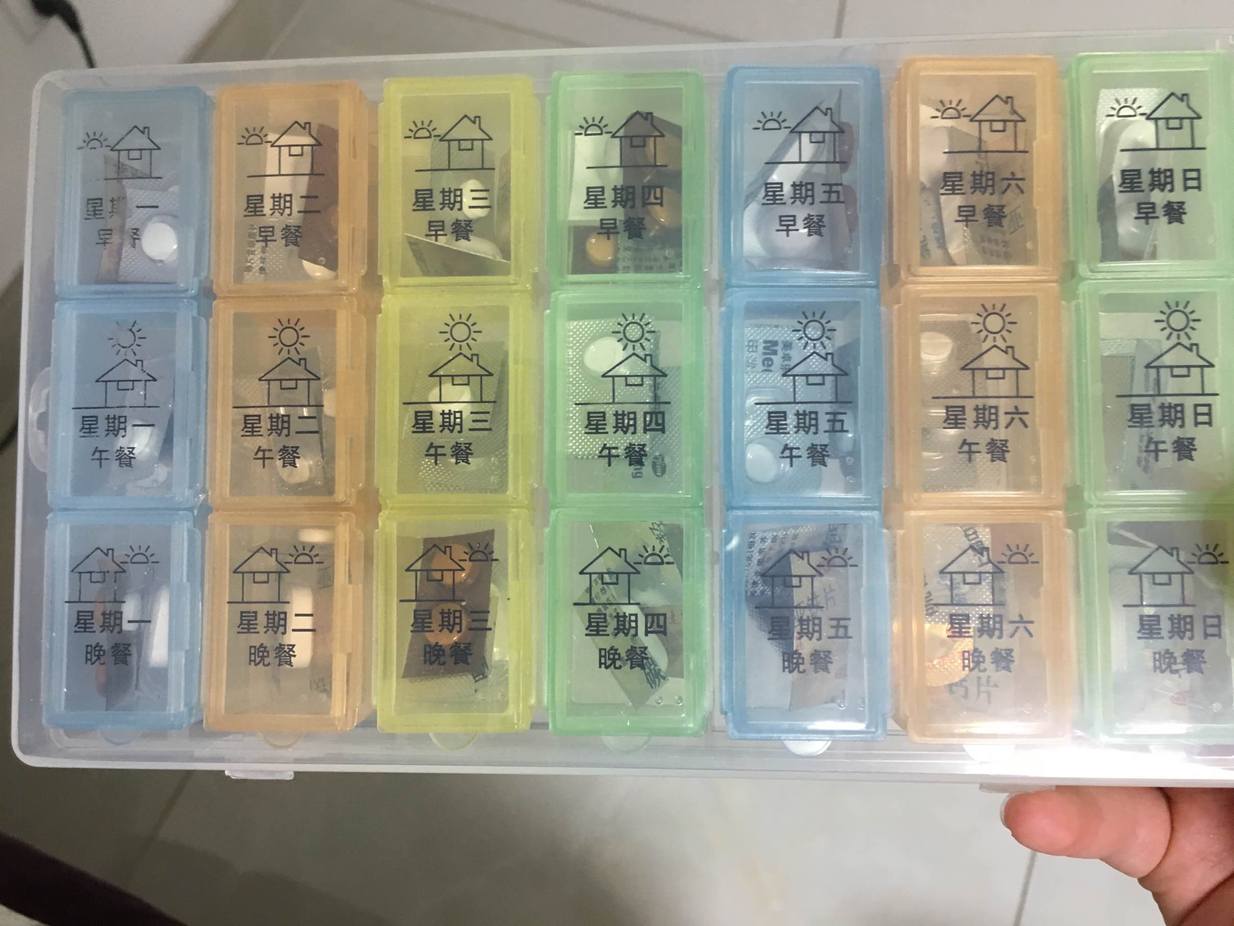 我女儿也是这个药盒,我一般装两天的药在里面,每天早上出门前让她带上!
