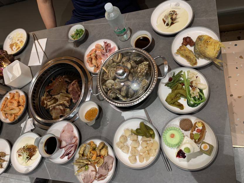 践行宴👨👩👦午餐🥣还是以自助餐形式进行,又换了一家以海鲜和烤肉为主的自助餐厅。