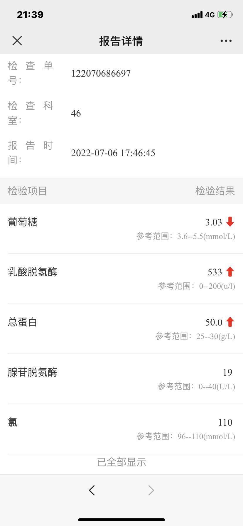 下图为胸腔积液化验