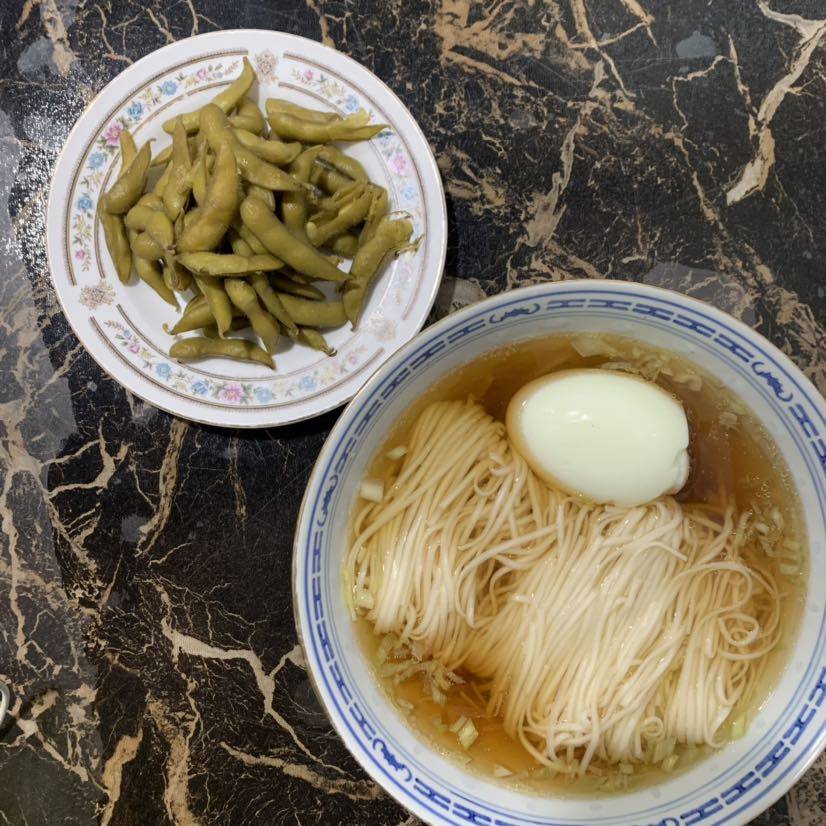 早餐🍜鹅蛋面条,毛豆