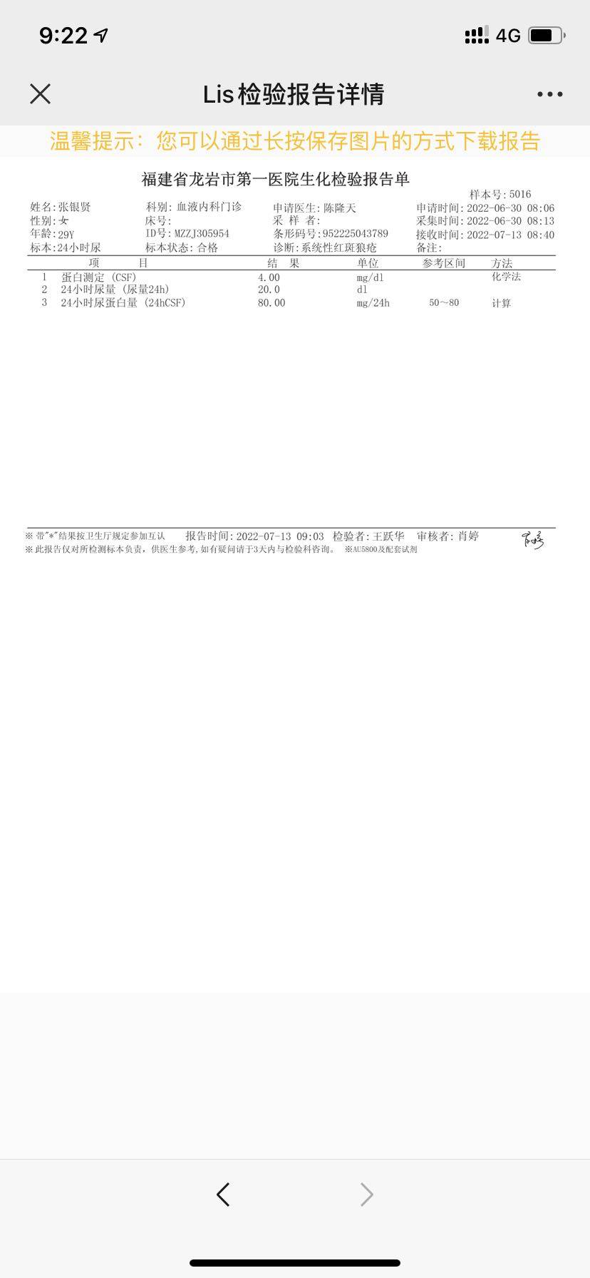 我今天送去检查,上个月6月15号,是1.19克蛋白,今天的报告是0.08克,很不错
